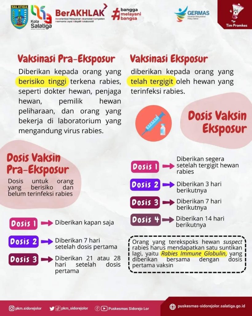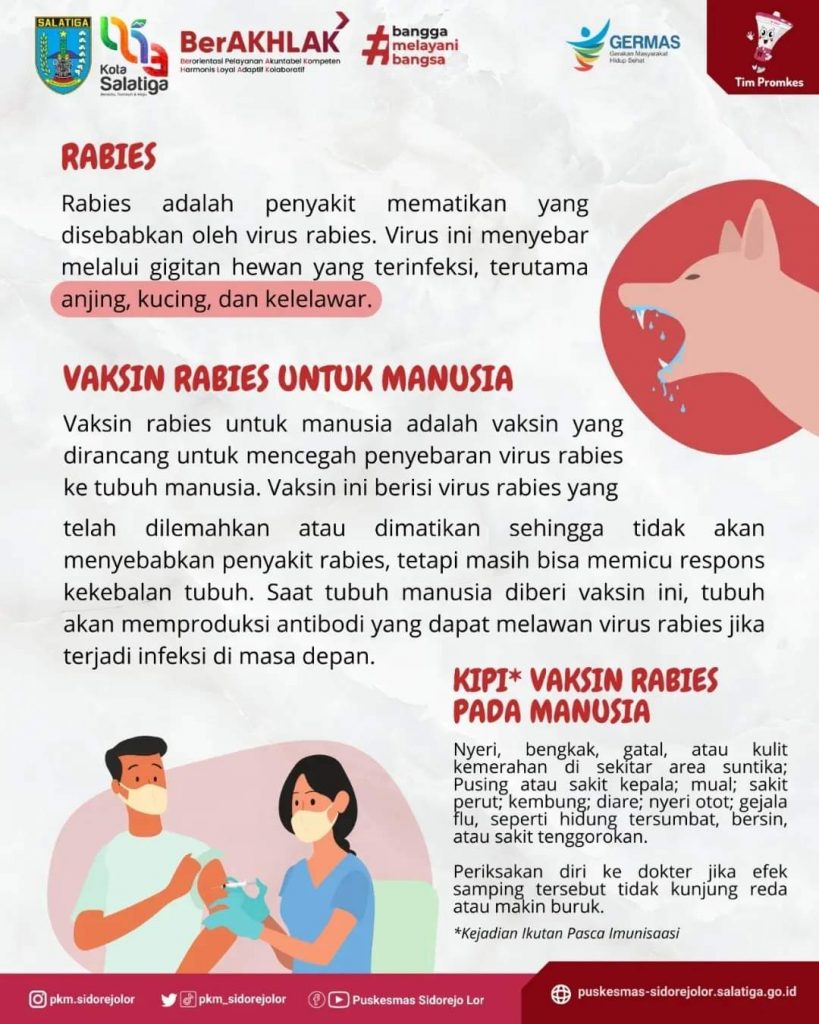 - Vaksinasi hewan peliharaan: Pastikan hewan peliharaan Anda mendapatkan vaksin rabies yang rutin sesuai dengan jadwal yang ditentukan oleh dokter hewan.