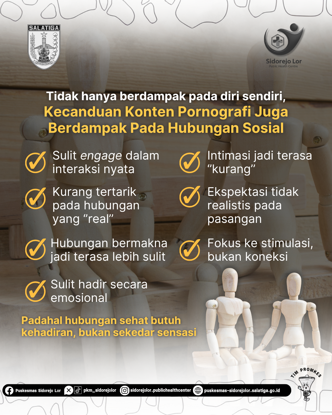 Di era digital saat ini, akses terhadap berbagai jenis konten sangat mudah, termasuk konten pornografi. Banyak orang menganggapnya sebagai hiburan atau pelarian dari rasa bosan, stres, atau kesepian. Namun, jika menjadi kebiasaan, konsumsi konten pornografi dapat berdampak pada kesehatan mental dan hubungan sosial seseorang.