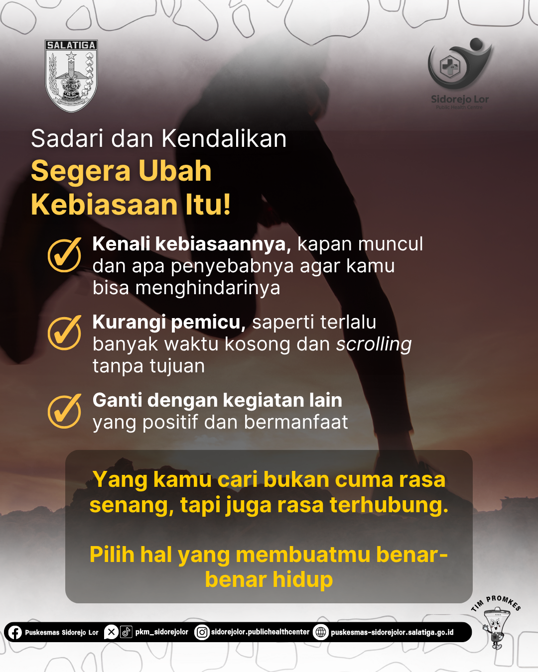 Jika kebiasaan sudah sulit dikendalikan, jangan ragu untuk berkonsultasi dengan tenaga kesehatan atau konselor.